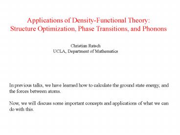exercises this afternoon. - DFT calculations can be used to obtain structural