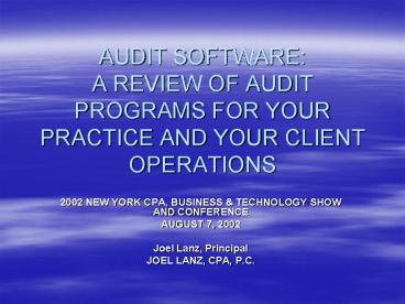 AUDIT SOFTWARE: A REVIEW OF AUDIT PROGRAMS FOR YOUR PRACTICE AND YOUR CLIENT OPERATIONS PowerPoint PPT Presentation