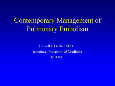 1Contemporary Management of Pulmonary Embolism