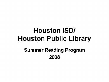 Houston ISD Houston Public Library PowerPoint PPT Presentation