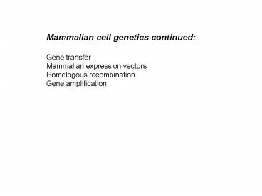 Title: Mammalian cell genetics continued: