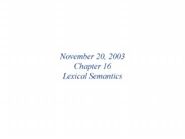November 20, 2003 Chapter 16 Lexical Semantics PowerPoint PPT Presentation