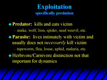 usually does not necessarily kill victim - tapeworm, flea, louse, aphid, malaria, etc.