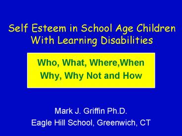 Title: Self Esteem in School Age Children With Learning Disabilities