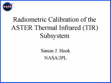 Title: Radiometric Calibration of the ASTER Thermal Infrared (TIR) Subsystem