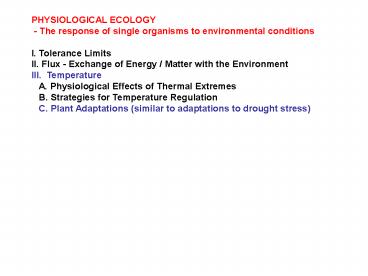 Title: PHYSIOLOGICAL ECOLOGY