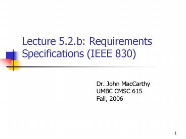 Lecture 5.2.b: Requirements Specifications (IEEE 830) PowerPoint PPT Presentation