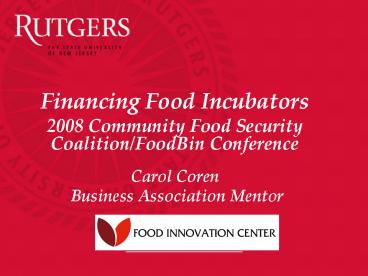 Title: Financing Food Incubators