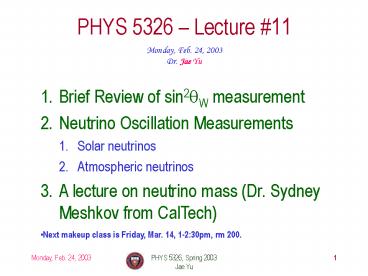 1PHYS 5326 Lecture 11
