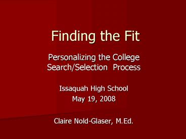 <Notice: Removed> Finding the Fit PowerPoint PPT Presentation
