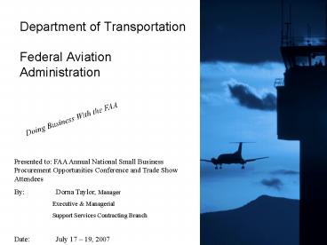 Opportunities with the FAA - Counseling on How to Market Services/Products