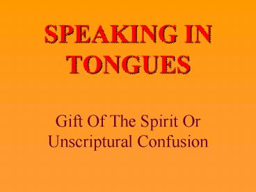 1SPEAKING IN TONGUES