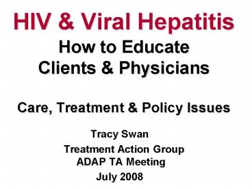 2HIV/ Hepatitis Coinfection Hepatitis B (HBV)