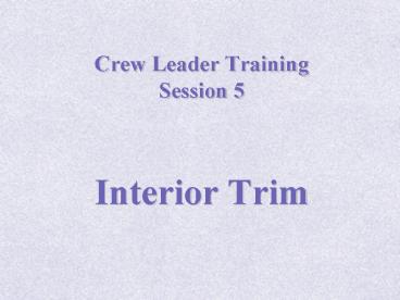 Crew Leader Training Session 5 PowerPoint PPT Presentation