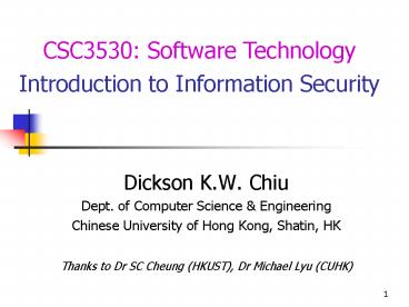 1CSC3530 Software Technology Introduction to