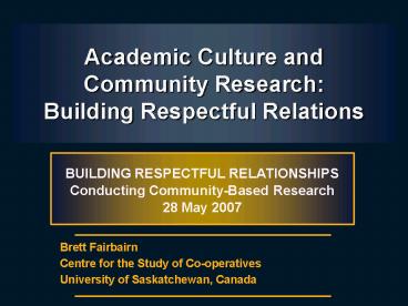 Title: Academic Culture and Community Research: Building Respectful Relations