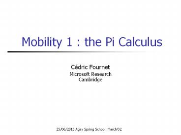1Mobility 1 the Pi Calculus