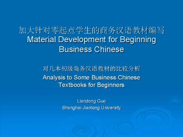 Material Development for Beginning Business Chinese PowerPoint PPT Presentation