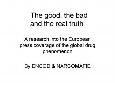 The good, the bad and the real truth PowerPoint PPT Presentation