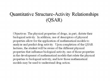Title: Quantitative Structure-Activity Relationships (QSAR)