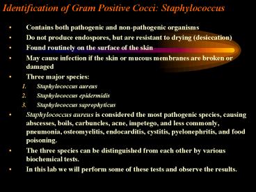 Identification of Gram Positive Cocci: Staphylococcus PowerPoint PPT Presentation