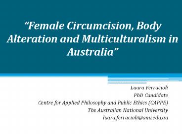 Female Circumcision, Body Alteration and Multiculturalism in Australia PowerPoint PPT Presentation