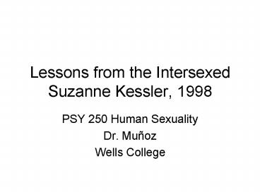 Lessons from the Intersexed Suzanne Kessler, 1998 PowerPoint PPT Presentation