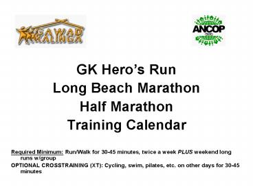 • OPTIONAL CROSSTRAINING (XT) Cycling, swim,
