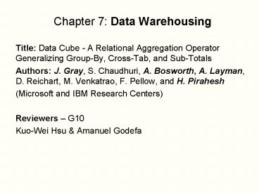 - (T7.3) J. Gray, S. Chaudhuri, A. Bosworth, A.