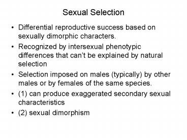 Sexual Selection PowerPoint PPT Presentation