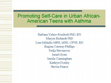 Title: Promoting SelfCare in Urban AfricanAmerican Teens with Asthma