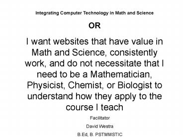 Title: Integrating Computer Technology in Math and Science