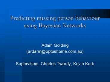 Predicting missing person behaviour using Bayesian Networks PowerPoint PPT Presentation