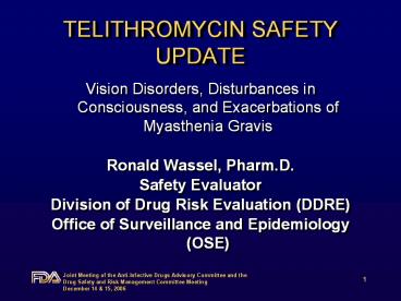 Title: TELITHROMYCIN SAFETY UPDATE