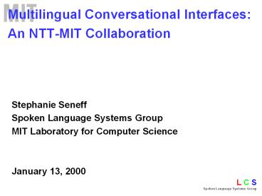 - Joseph Polifroni (MIT-LCS)