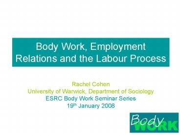 Title: Body Work, Employment Relations and the Labour Process