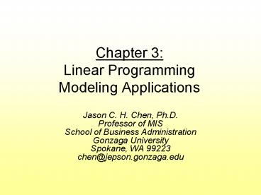 <Notice: Removed> Chapter 3: Linear Programming Modeling Applications PowerPoint PPT Presentation