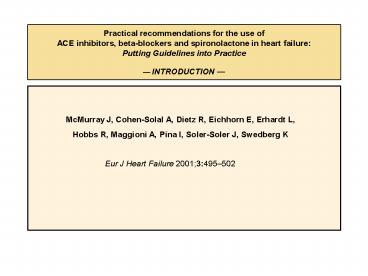 Title: Practical recommendations for the use of ACE inhibitors, beta-blockers and spironolactone in heart failure: Putting Guidelines into Practice