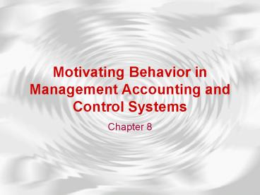 <Notice: Removed> Motivating Behavior in Management Accounting and Control Systems PowerPoint PPT Presentation