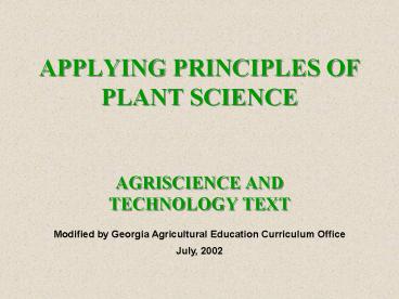 APPLYING PRINCIPLES OF PLANT SCIENCE - PowerPoint PPT Presentation