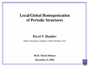 Title: LocalGlobal Homogenization of Periodic Structures