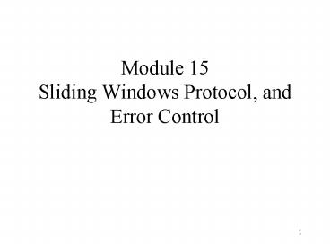 Title: Module 15 Sliding Windows Protocol, and Error Control