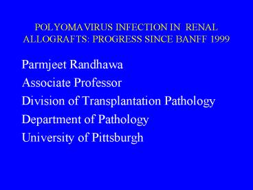 POLYOMAVIRUS INFECTION IN RENAL ALLOGRAFTS: PROGRESS SINCE BANFF 1999 PowerPoint PPT Presentation