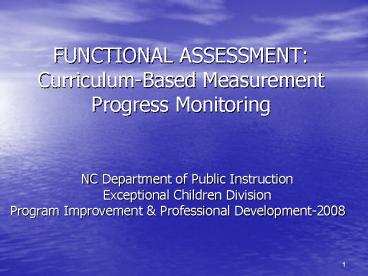 FUNCTIONAL ASSESSMENT: CurriculumBased Measurement Progress Monitoring PowerPoint PPT Presentation