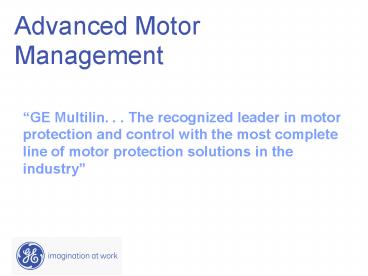 - GE Multilin. . . The recognized leader in motor