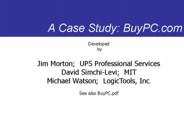 23BuyPC.com Tactical ResultsDetermining warehouse