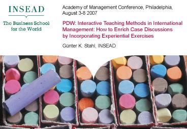 Exercises Günter K. Stahl, INSEAD