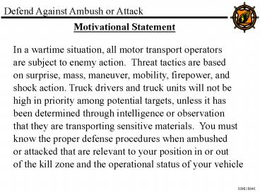 1Defend Against Ambush or Attack