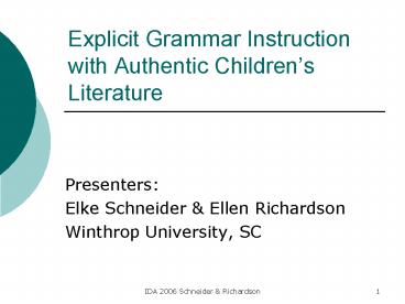 Title: Explicit Grammar Instruction with Authentic Childrens Literature