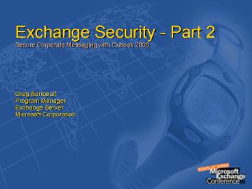 ServerImmediately following this session - Microsoft Exchange and Secure Internet